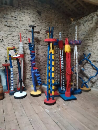 Ces sculptures, que Nouyrit a intitulées "Totems Modernes", rayonnent d'une énergie puissante qui transcende la perception traditionnelle du totem. Loin d'être des symboles statiques, ces créations vibrantes captivent le regard et invitent le spectateur à un voyage de découverte.